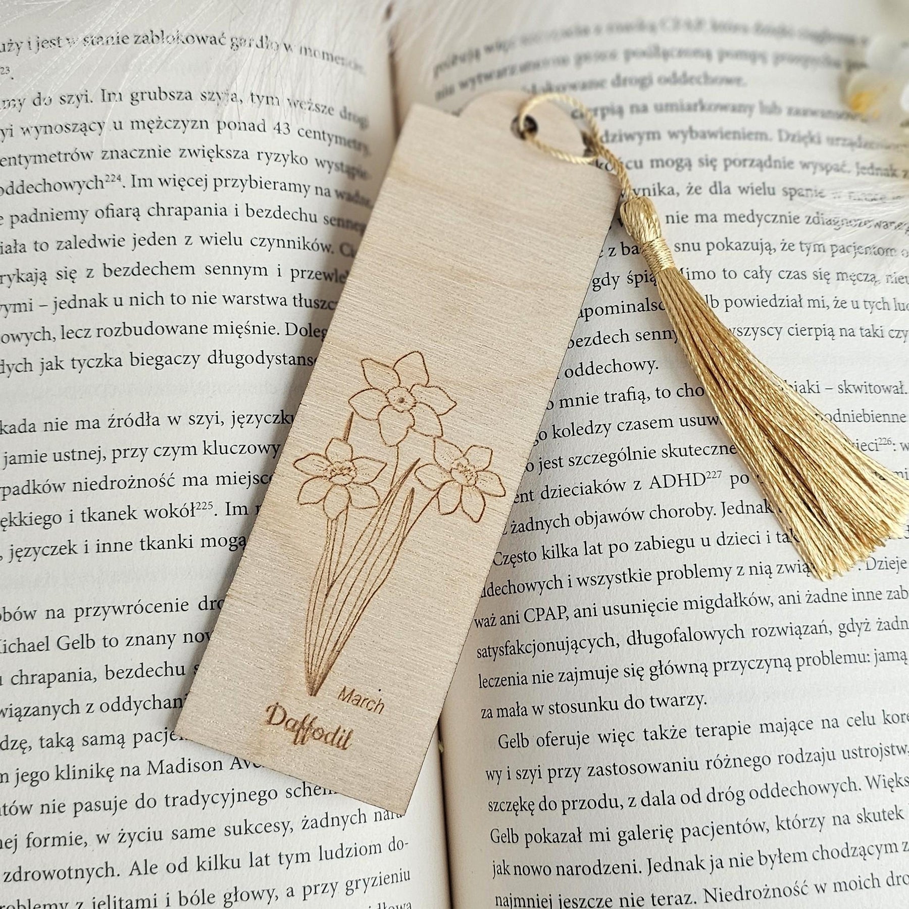 Birth Flower Bookmark March Daffodil - Personalised Wooden Gift for Book Lovers