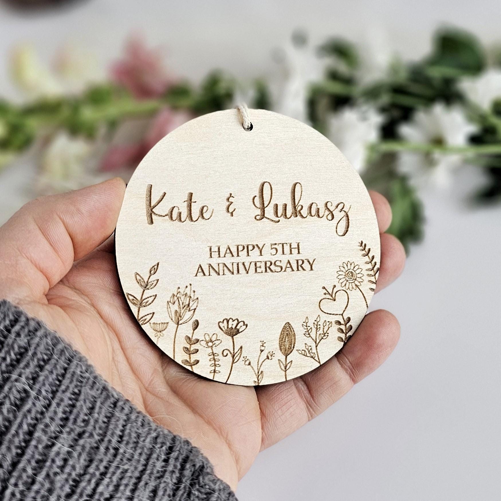 Wooden Anniversary Ornament – Floral Meadow | Personalised Keepsake | Hanging Decoration | Gift Tag