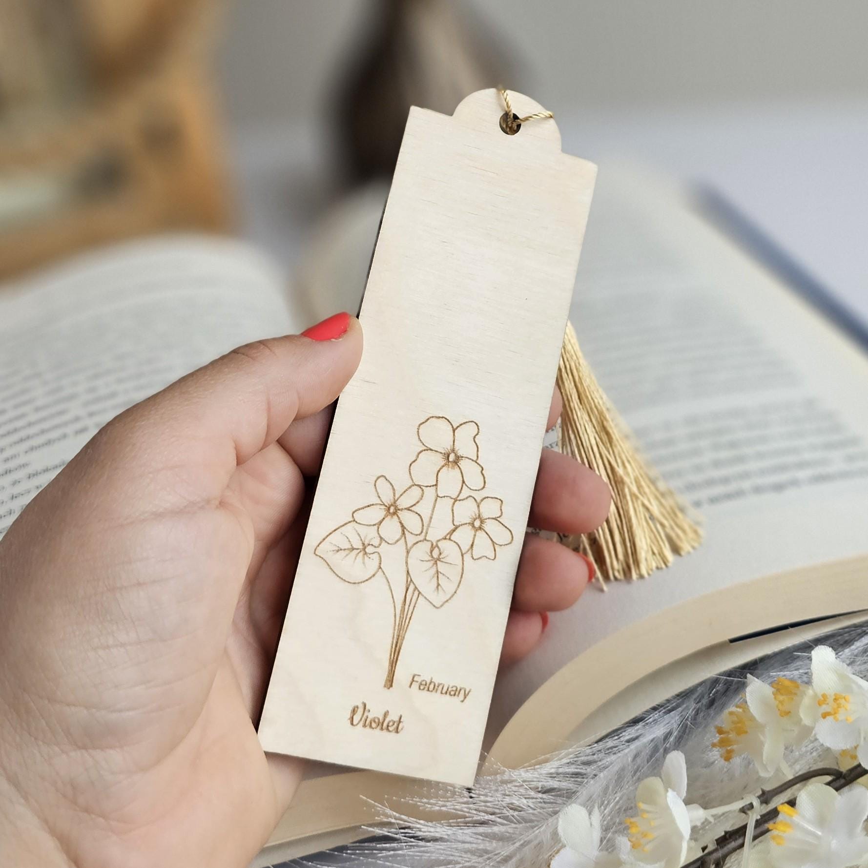 Birth Flower Bookmark February Violet - Personalised Wooden Gift for Book Lovers