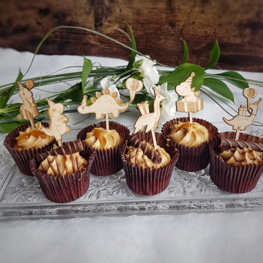 Dinosaurs Cupcake Toppers - Wooden Cake Decorations - Set of 6 or 12