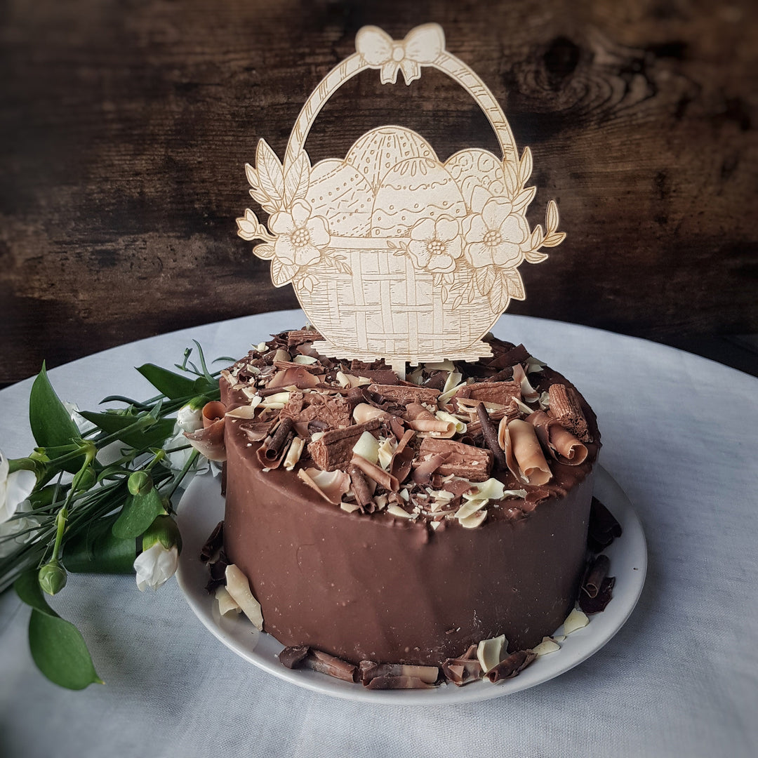 Wooden Easter Cake Topper, Easter Basket Design, Rustic Cake Decoration