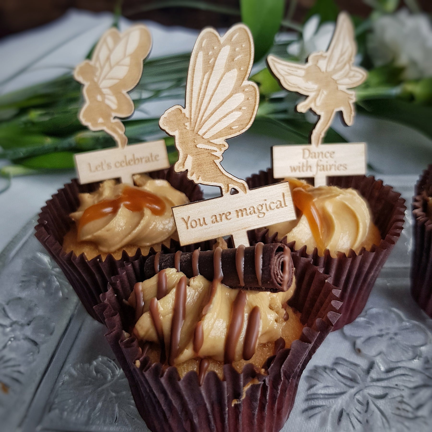Each topper is expertly crafted from high-quality birch plywood and features a charming fairy design with delicate details. Best of all, you can personalise each topper with your own special message or the name of your guest of honour to make your cupcakes truly one-of-a-kind.