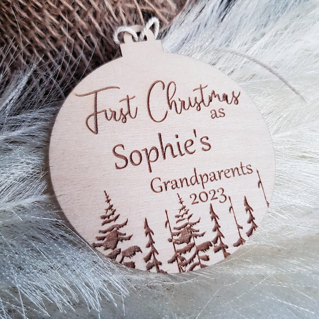 Personalised Wooden Christmas Tree Ornament - Custom Winter Keepsake for Grandma and Grandpa