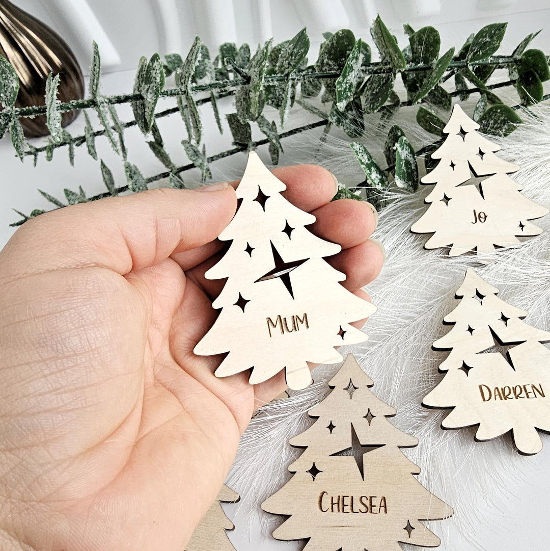 Personalised Rustic Star Wooden Place Settings for Winter Weddings - Ideal for Christmas Dinners Gift Tags