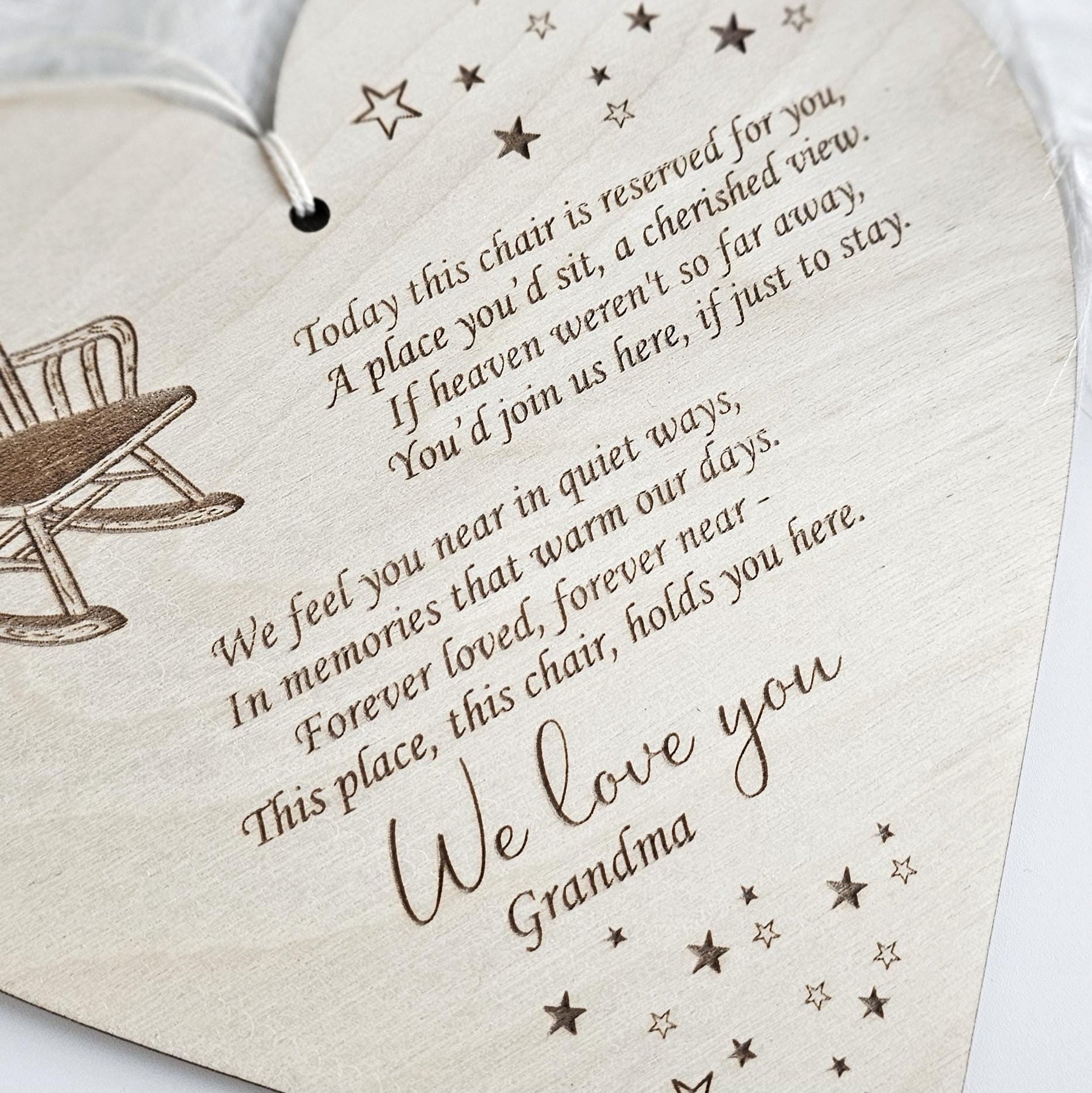 This heartfelt wooden engraved plaque serves as a beautiful tribute to a loved one who has passed. Designed to reserve a special seat in their memory, this sign offers a comforting reminder of those who live on in our hearts.