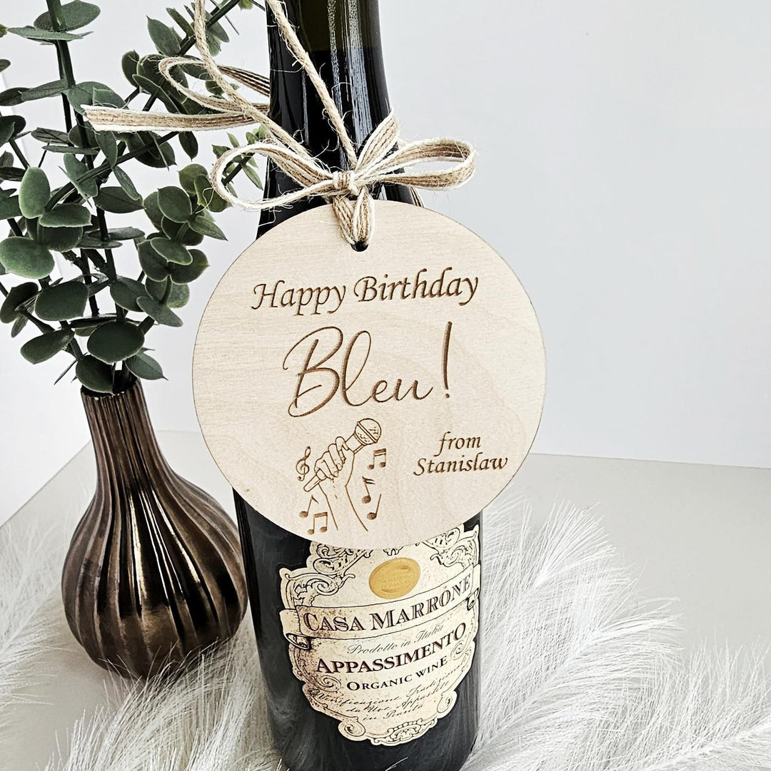Personalized Rustic Wooden Gift Tag - Hanging Wine Tag for Birthdays Anniversaries Weddings