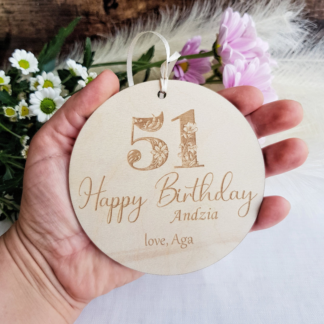 Birthday Gift Tags Custom Floral Number - Personalised Wooden Ornament for Adults and Children