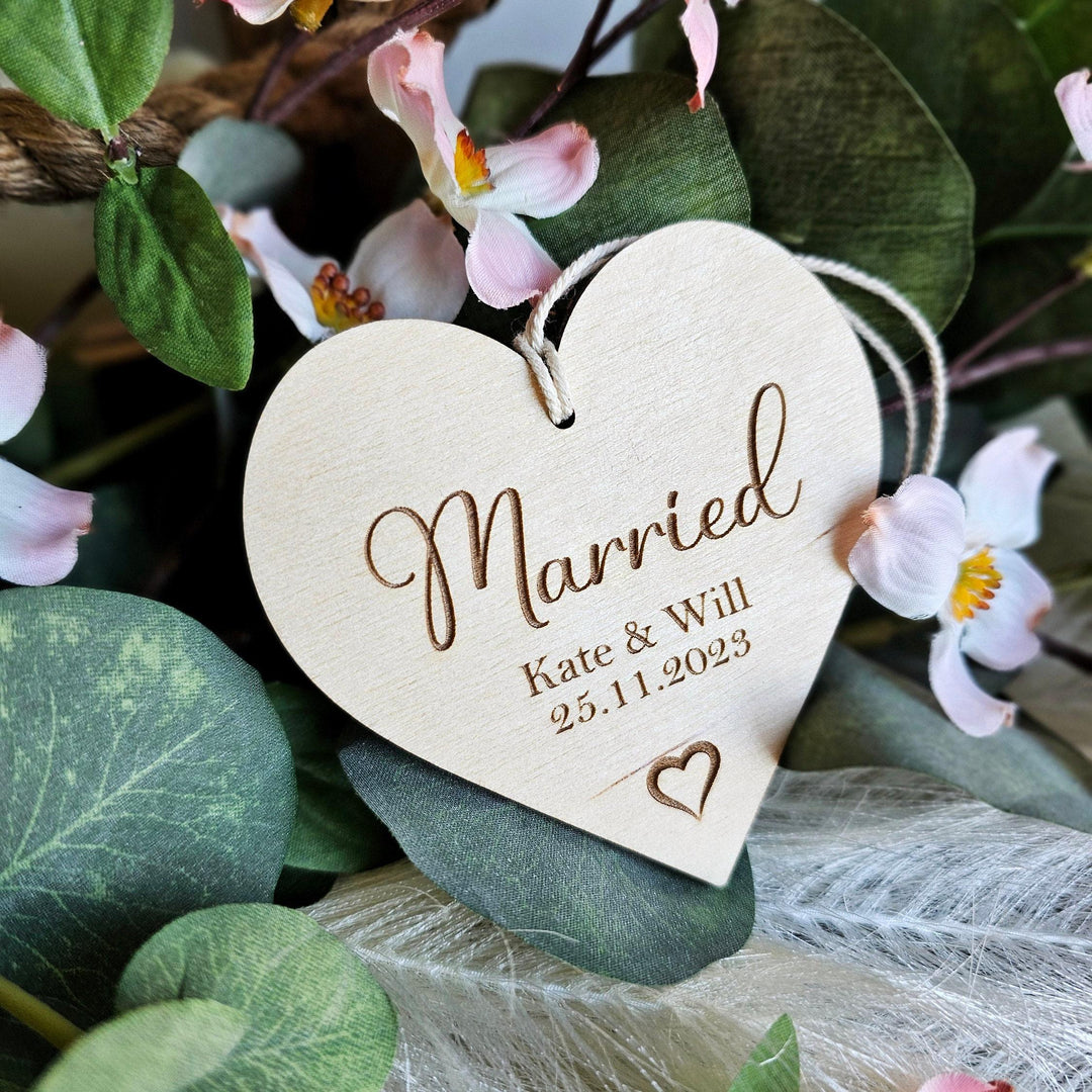 Personalised Wedding Gift Heart Plaque - Bridal Party Tag / Ornament- Bridesmaid, Maid of Honour, Flower Girl Wooden Keepsake