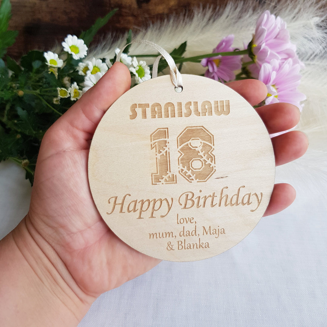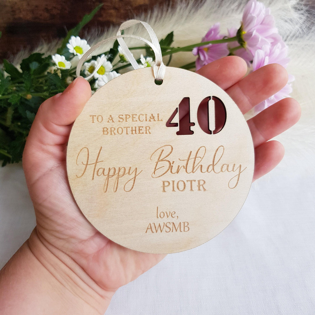 Personalised Rustic Wooden Birthday Gift Tag - Keepsake Ornament for Milestone Ages 1st to 90th