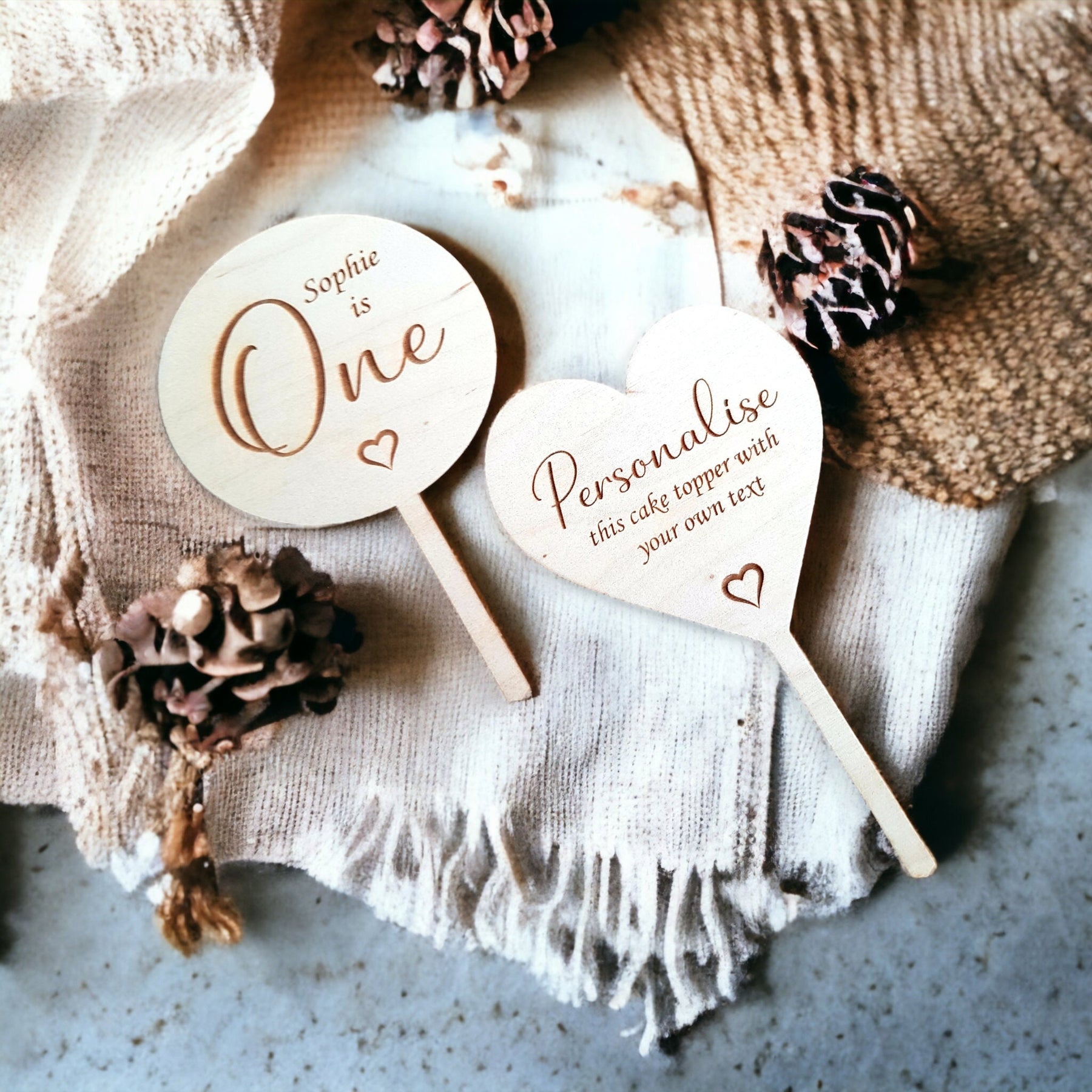 Personalised Wooden Birthday Cake Topper, perfect for adding a truly special touch to any occasion cake! Handcrafted from high-quality birch plywood and beautifully laser engraved with a custom birthday cake name, this rustic cake topper is designed to make a statement. Whether it's a Wedding, Anniversary, Birthday, First Holy Communion, Christening, Baptism, or any other celebration, our versatile cake topper is sure to impress. Its charming rustic design and laser-engraved details will add a unique touch to any cake, making it the centerpiece of your event. With this custom birthday cake topper, you can add a personal and heartfelt touch to your special day.