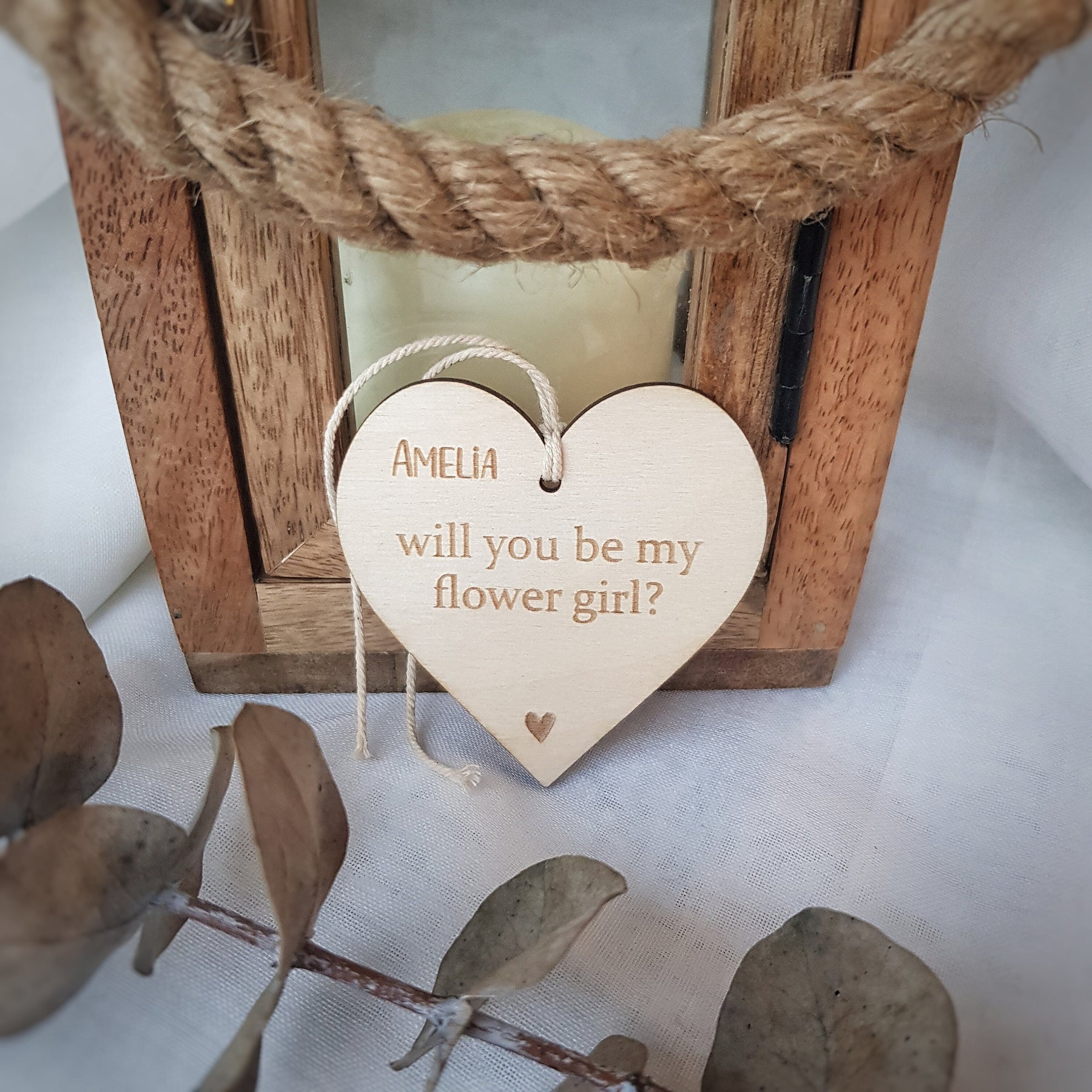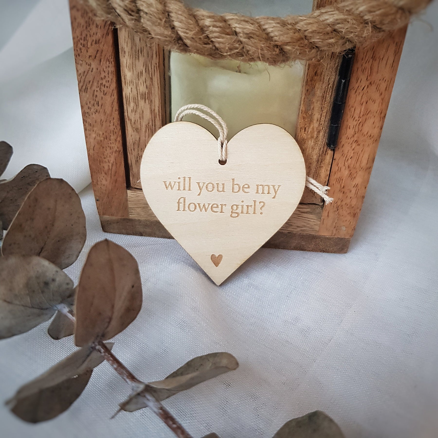 Our unique, handcrafted wooden keepsake is the perfect choice for an original way to pop the question to your flower girl! Made with rustic charm and attention to detail, this piece will serve as a cherished memento for years to come. Give your flower girl a proposal she will never forget with this heartfelt gift. Looking for something for your Bridesmaid or Maid of Honour? We have those too! Our wood tags are one-of-a-kind and make for the perfect keepsake for years to come.