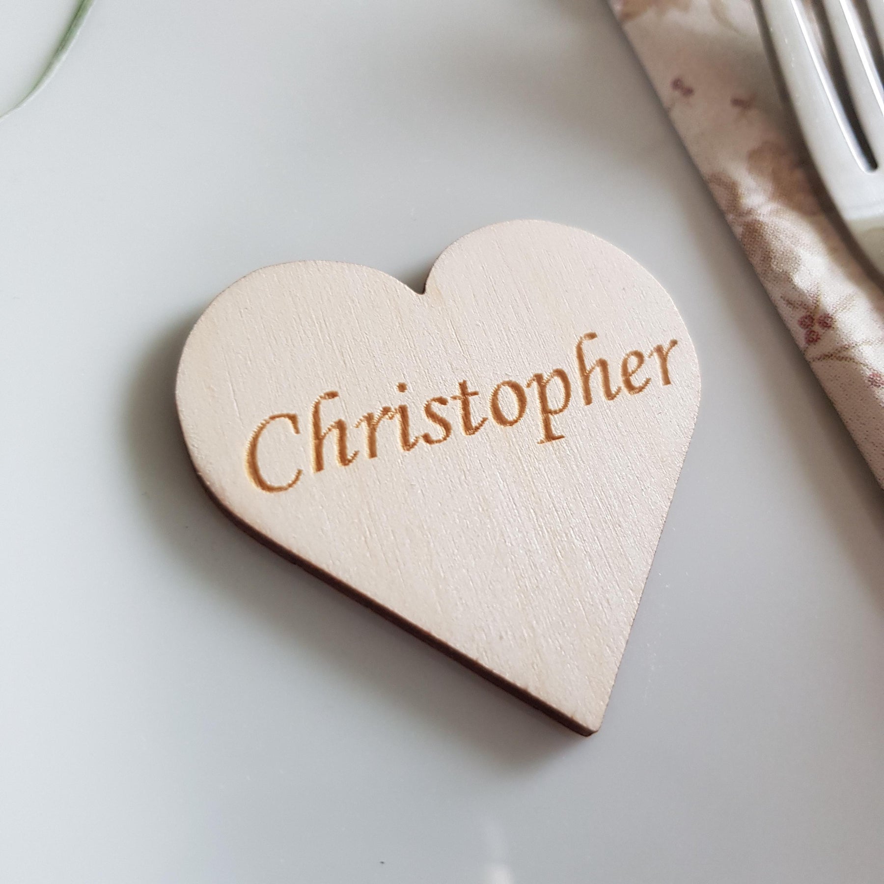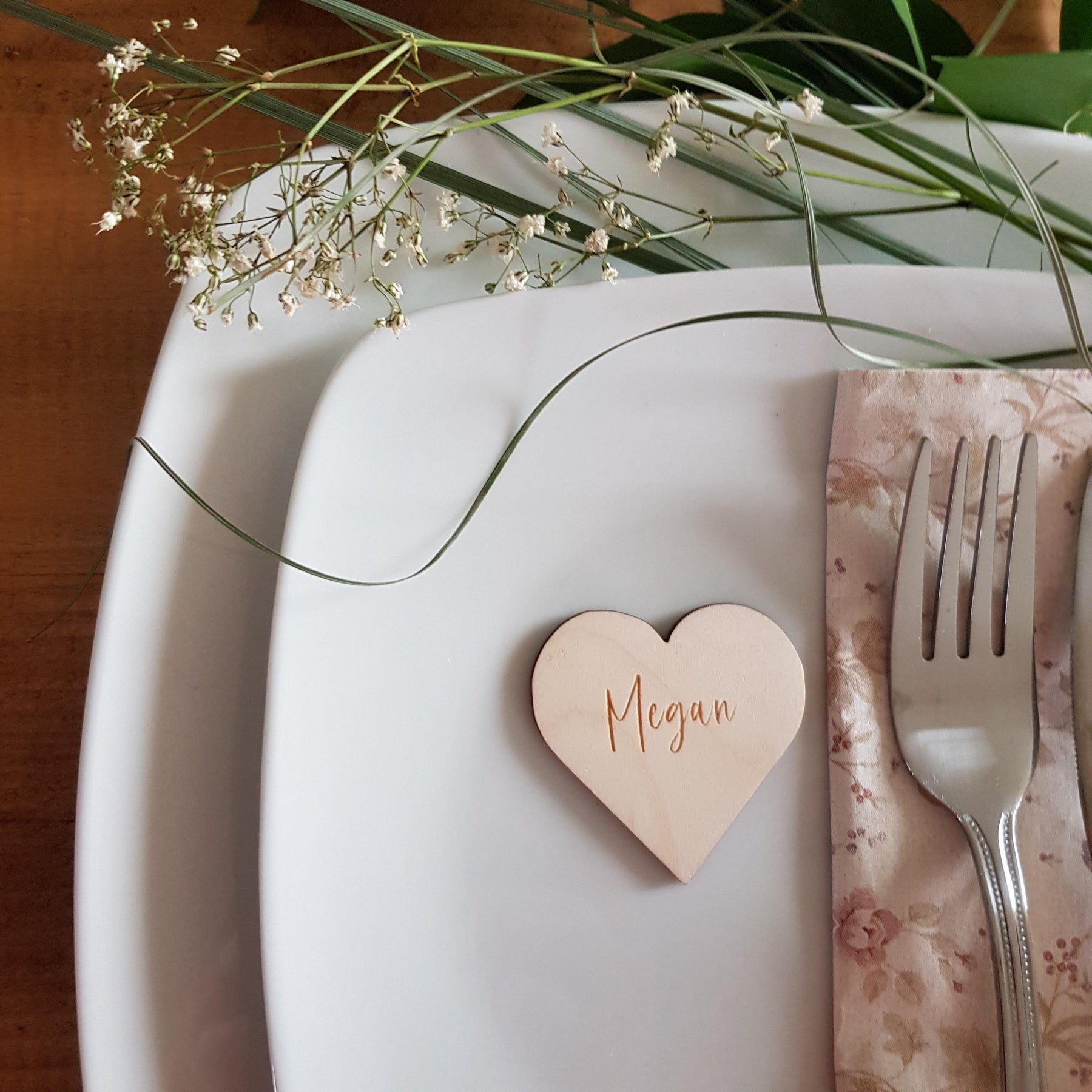 Elevate the charm of your wedding tables with our Rustic Wedding Name Place Settings - these Wedding Favours double as Personalised Placement Cards for a natural touch to your special day. Crafted from laser-cut and engraved 3mm birch plywood, these Table Decorations will make a statement. The Rustic wood names and Wedding place cards are perfect for adding a personalised touch to any event, party, or table setting.