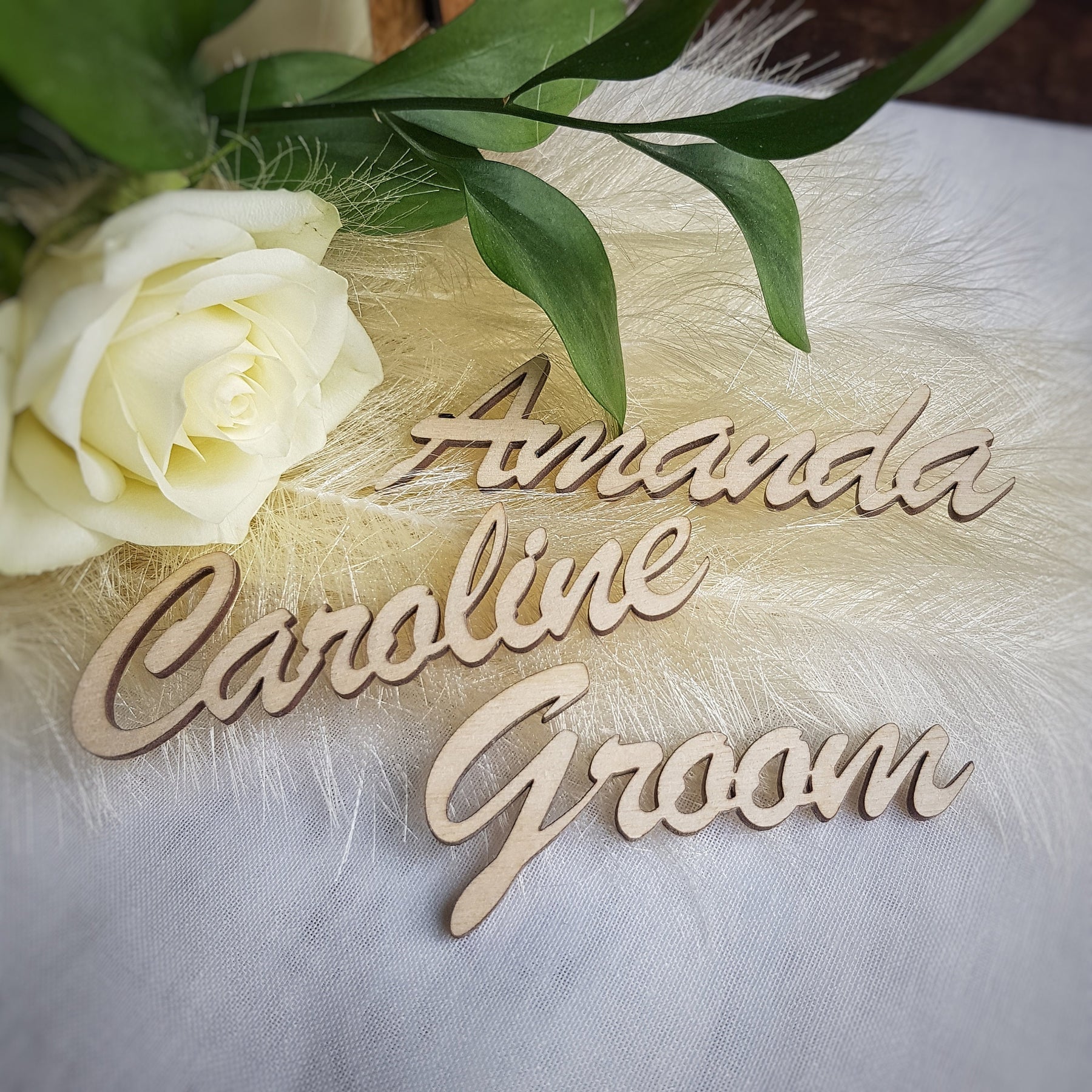 Rustic wooden names / words, custom laser cut, wedding place cards, place setting, wall art and craft, 4 height sizes