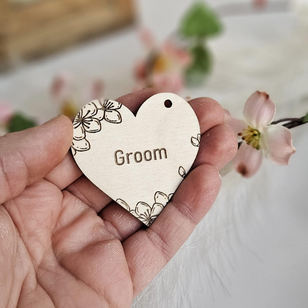 Wedding Heart Favours - Personalised Wooden Thank You Tokens, Custom Engraved Rustic Gift Tags
