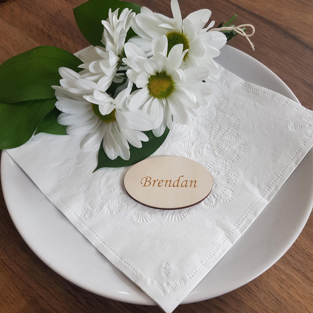 Rustic Wedding Place Name Cards, Personalised Wooden Tags, Wedding Favours, Table Decorations, Natural Birch Name Discs