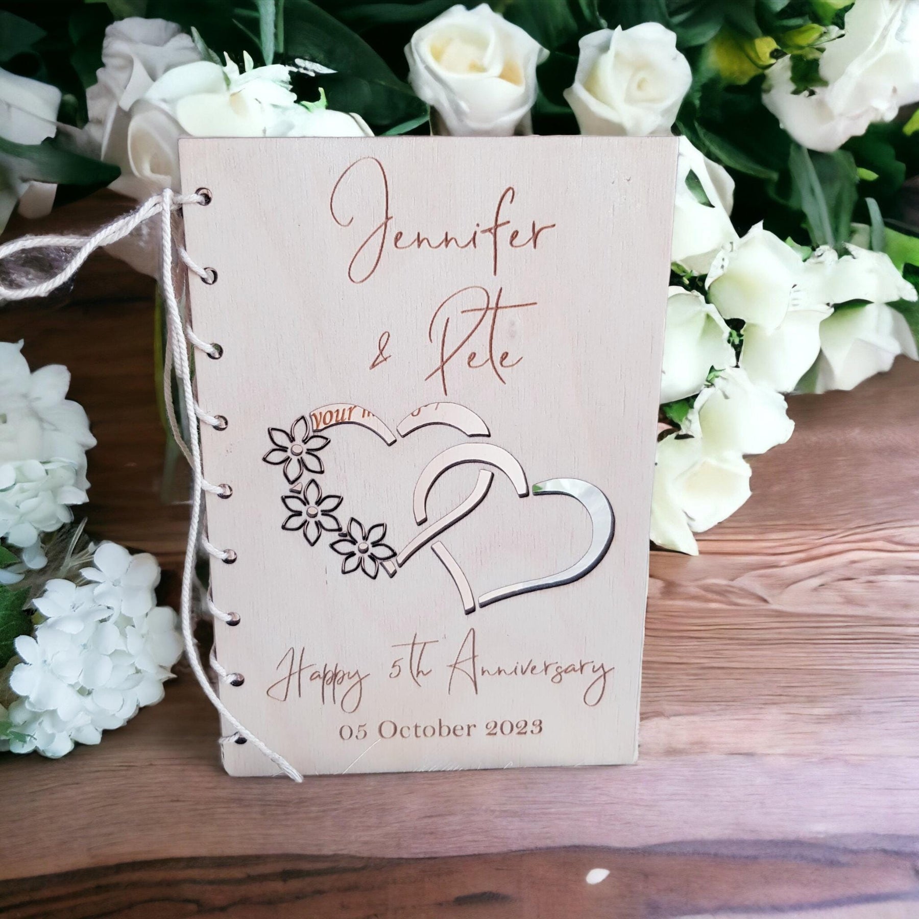 Personalised Wooden Anniversary Card - Handmade Rustic Style Keepsake - Engagement Wedding Couple Eco-Friendly Gift